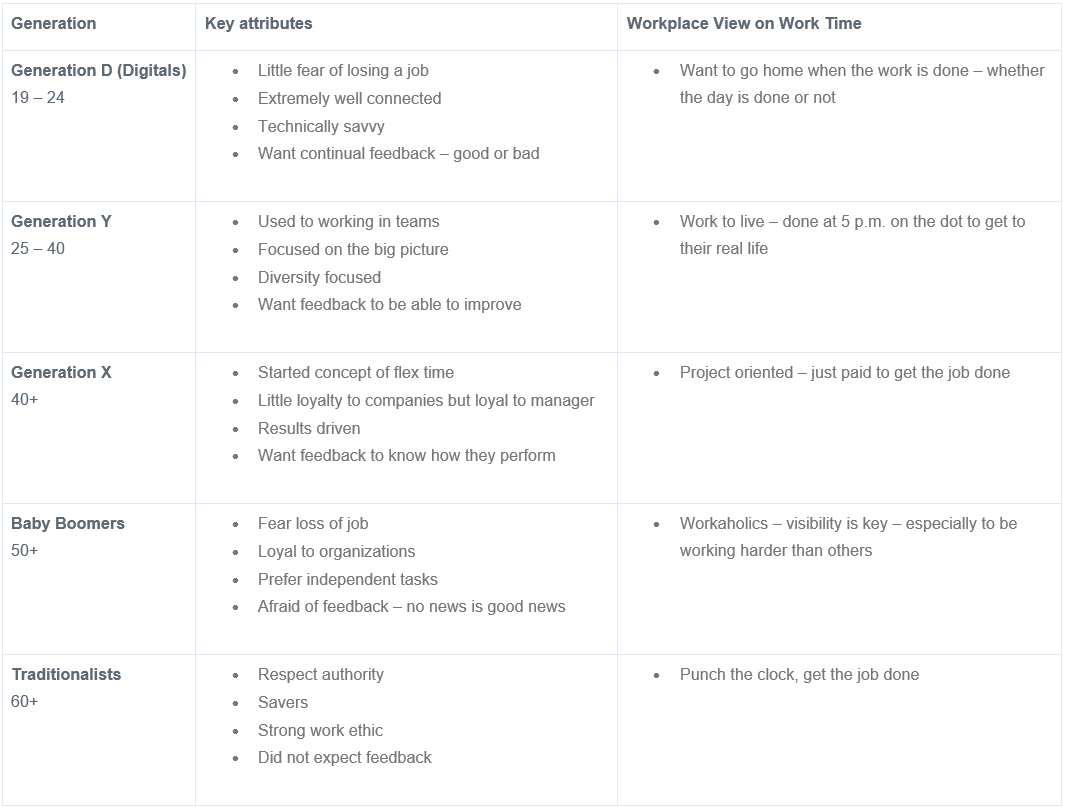 Here are some brief generalizations about the 5 generations in today’s workforce: